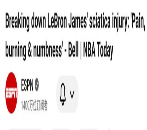“我想先回应一个大家普遍关心的问题 —— 湖人队宣布消息后,我收到了很多相关消息,有人问 这会不会是高尔夫相关伤病?因为詹姆斯整个夏天都在打高尔夫,而高尔夫球手确实容易出现坐骨神经痛。”