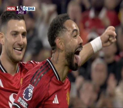 英超第9轮主场迎战布莱顿的比赛中,马特乌斯-库尼亚的进球为曼联首开记录。