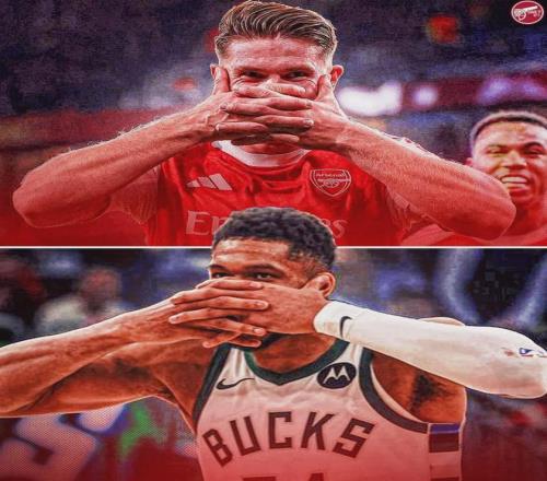 在雄鹿战胜尼克斯的比赛中,阿森纳球迷、“字母哥”阿德托昆博做出了哲凯赖什的经典庆祝动作。