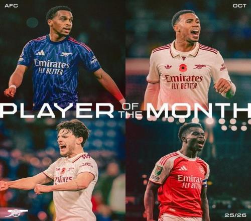 北京时间11月3日,阿森纳官方公布了队内10月最佳球员候选名单,这4名球员为加布里埃尔、赖斯、萨卡、廷贝尔。