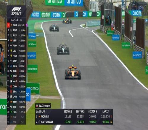 冲线!诺里斯在冲刺赛完成pole to win,与队友在积分榜上的差距扩大至9分!