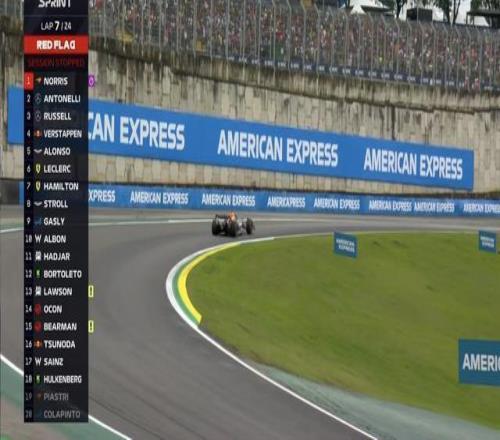 北京时间11月8日,F1巴西站冲刺赛结束。诺里斯杆位夺冠,安东内利亚军,拉塞尔季军。维斯塔潘第4,勒克莱尔第5,阿隆索第6,汉密尔顿第7,加斯利第8。科拉平托、皮亚斯特里上墙退赛。