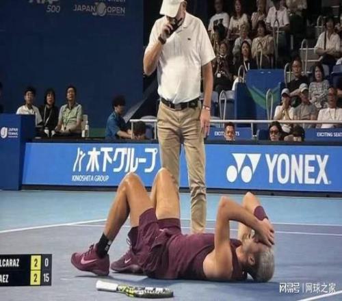 9月30日,阿尔卡拉斯和弗里茨在一个月之内再次交锋,这一次的舞台是ATP500东京站决赛。此前第一轮比赛,阿尔卡拉斯与阿根廷新一代矮脚虎巴埃斯交锋,突然扭伤了左脚踝,疼痛难忍,几乎不能坚持比赛了。但是顽强不屈的阿尔卡拉斯呀,轻伤不下火线,不仅坚持打完比赛,而且两盘战胜对手。