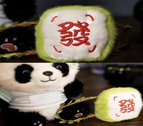 圆滚滚的熊猫身上细节满满:胸前可自由DIY书写的号码布、背着发财的麻将牌背包,脸上两坨粉粉的腮红…… 非常川渝,非常成都。