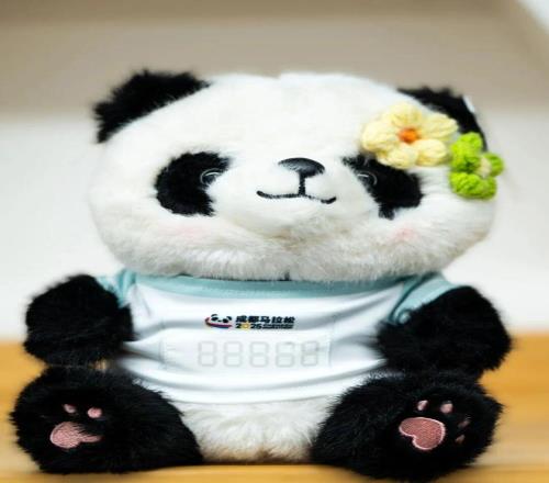谁能拒绝一只可爱的熊猫呢?成都马拉松今年依旧将熊猫主题贯穿整个赛事,除了赛前好评如潮的有着熊猫元素的参赛服、完赛奖牌,成马的熊猫周边——跑马熊猫毛绒玩偶更是乖萌得让人爱不释手。