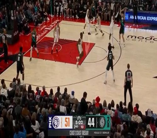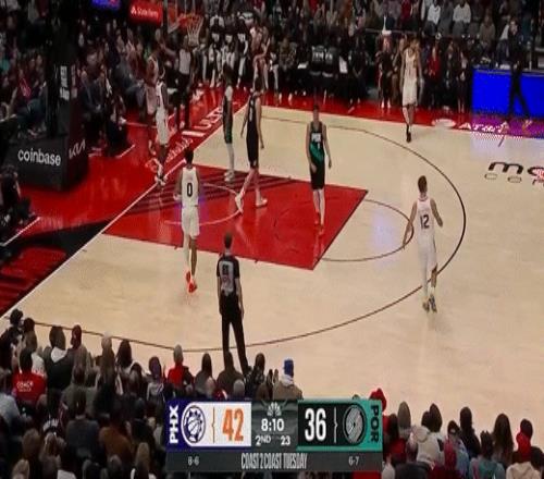 第四节开拓者谢登-夏普拿下6分,太阳吉莱斯皮拿下9分,最终开拓者110-127不敌太阳