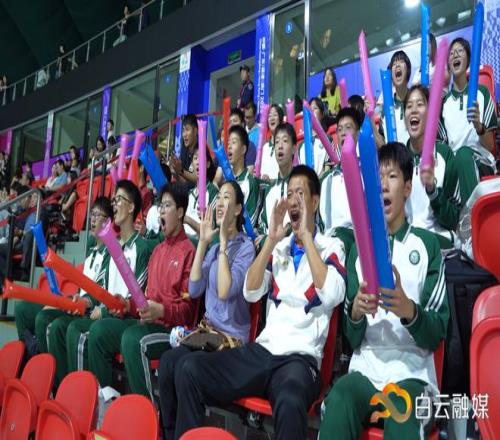 李东阳妈妈、培英中学学弟学妹来到现场为广东队加油打气。图源:白云融媒