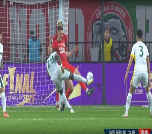 第87分钟,张玉宁禁区内被撞倒,法比奥主罚点球被王国明封出,但王国明双脚提前离线,法比奥再次主罚点球破门,3比0!