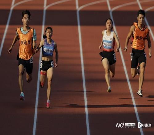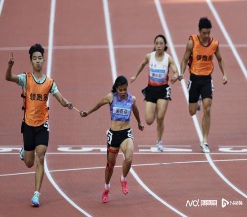 女子100米T36级决赛,湖南运动员史逸婷首先冲过终点。