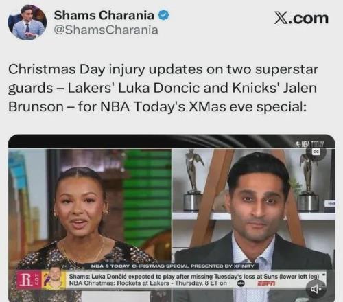 东契奇真给面子,将出战湖人主场VS火箭的圣诞大战,如此一来两队核心成员均披挂上阵,流量疯狂拉满,货真价实的火星撞地球。