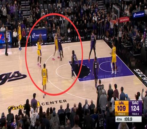 当时克内克特扣篮命中,湖人追到109:124时间还剩40秒,分差15分,国王已经决定不打了,蒙克带球到前场之后,国王也示意最后40秒不打了。他们整整消耗了24秒,把球权白送给了湖人。对方主动消耗24秒,宁可增加一次失误也要好把球给你,这个球其实国王的态度就很明显,觉得双方都不会打了。