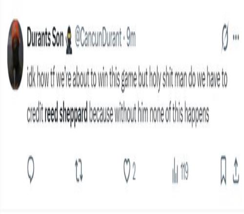 第三节谢泼德的表现也不好3中1+三分1中0只拿2分1助攻,可乌度卡还是信任他让他末节继续登场,乌度卡的信任换来了奇迹,谢泼德三分命中后抢断一条龙,虽然上篮被帽可芬尼跟进打停马刺。