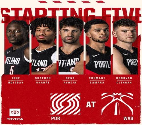开拓者:杨瀚森6分5篮板1助攻,夏普5记三分31分,阿夫迪亚复出17分12篮板,克林根14分20篮板,卡拉马4记三分16分9篮板4助攻,吕佩尔10分6篮板5抢断。