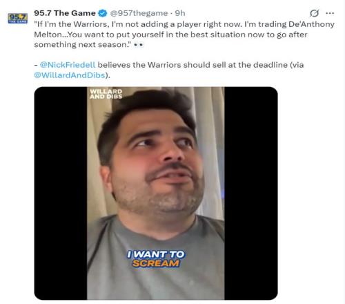 NBC记者尼克-菲尔德谈到目前的勇士队,他表示:如果我是勇士管理层现在我不会去引援,我会交易掉梅尔顿换取未来资产,让下赛季能保持竞争力。