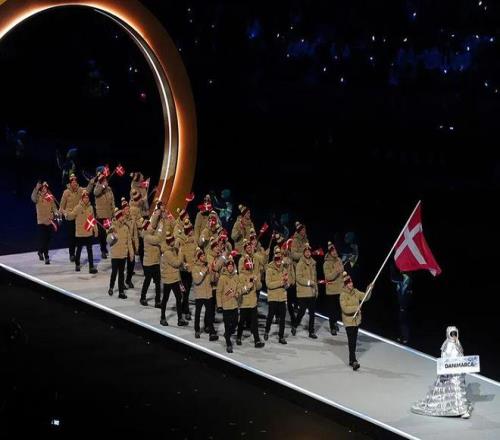 丹麦队的开幕式look,感觉像是来军训,和其他代表团相比,这土黄配色属实难评。