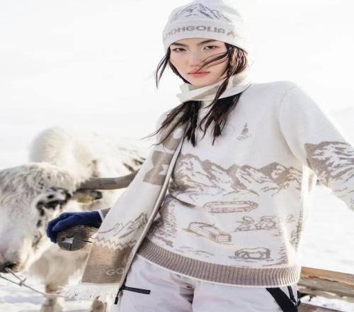 除了开幕式礼服,他们的休闲装也很有意思,针织毛衣体现了蒙古包文化,很有家乡情怀。
