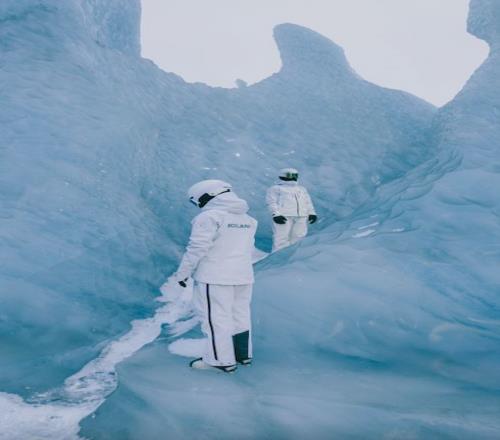 材质上依然保持了硬核水准,专业的 GORE-TEX Pro 面料,能够从容应对高山的变幻风云。冰山里拍摄的时尚大片更是氛围感拉满,非常迎合当下的审美流行。