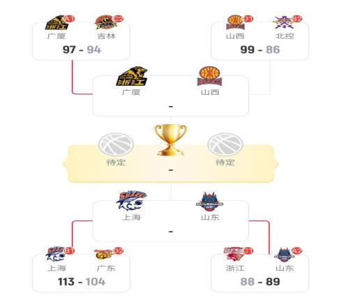 凭借新外援盖伊在第四节的超神发挥,单节飚进4记三分狂轰18分,山西最终以99-86逆转北控,拿到了最后一张晋级俱乐部杯4强的门票,如此一来,本赛季俱乐部杯最后4强席位也就确定,上半区广厦对阵山西,下半区山东将迎战上海,下面,就来分析一下这次俱乐部杯的争冠形势。