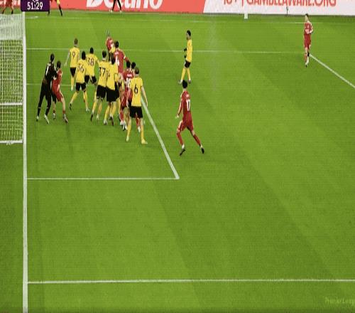 第51分钟,利物浦获得角球,琼斯本打算头球攻门,却变成了胸部射门,皮球击中横梁,弹了出来。