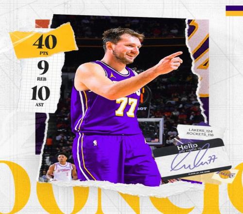 全场比赛东契奇37分钟,25中12,三分17中7,罚球14中9,拿到40分10助攻9篮板1抢断5失误。此役东契奇创造的纪录: