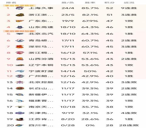 CBA第28轮结束了所有比赛,最新积分榜如下!