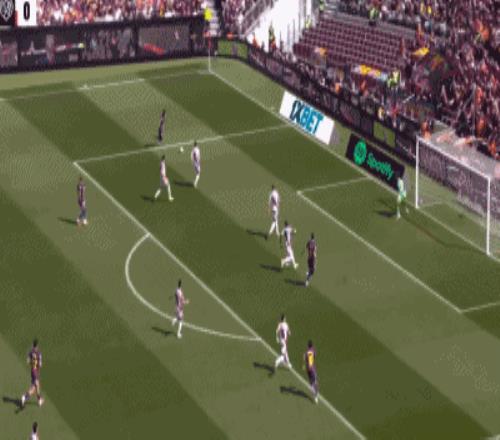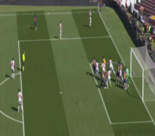 第24分钟,坎塞洛角球传中,落点恰到好处,阿劳霍后点头球攻门,击中立柱入网,巴萨打破僵局,1-0!