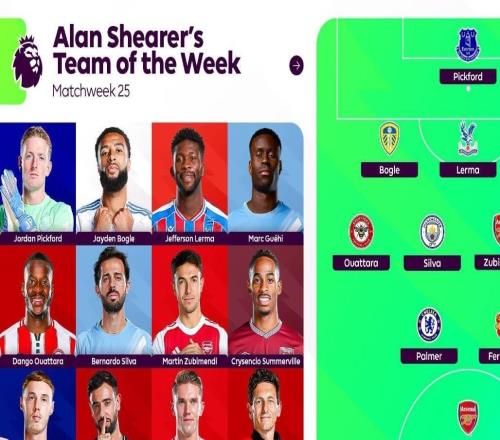 希勒评英超第25轮最佳阵:B席、格伊、B费、帕尔默、哲凯在列